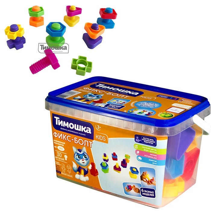 Конструктор "Фикс-Болт" предназначен для самых маленьких ребят, поскольку состоит из крупных элементов, которые удобно лежат в детской ладошке. В комплект входят пластиковые болтики и винтики, которые малыш будет с удовольствием прикручивать друг к другу. Конструктор помогает развивать сразу несколько навыков малыша: тренирует мелкую моторику, знакомит с формами предметов, цветами, учит сравнивать и разделять объекты по определенным признакам.