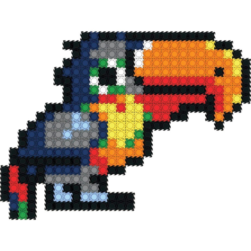 Яркий пиксельный конструктор содержит детали разного цвета.