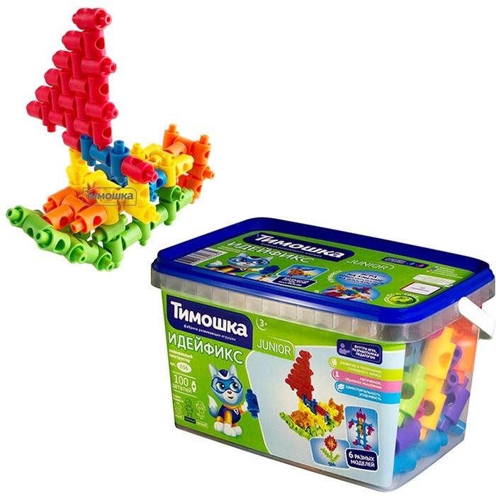 Конструктор "Идейфикс" на 100 элементов относится к серии "Junior" и состоит из трубчатых элементов с вертикальными и боковыми креплениями. Элементы складываются в различные геометрические фигуры, постройки, диковинных животных и другие объекты, помогая тренировать аналитическое и пространственное мышление, логику и мелкую моторику ребенка.