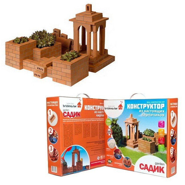 Садик - керамический конструктор из настоящих кирпичиков, предназначенный для детского творчества. Строительная смесь из песка и крахмала прочно соединяет кирпичики между собой. Смесь без труда растворяется в воде, поэтому готовое сооружение можно разобрать и собрать что-то новое. В наборе 288 деталей.