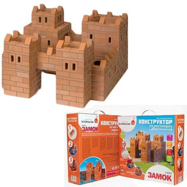 Оригинален конструктор Brickmaster тем, что для творчества детям предлагается настоящий строительный материал. Это кирпичики небольшого размера из глины и специальный порошок из крахмала и песка, который можно разводить, как цемент. Если материал для строительства закончится, то Вы всегда сможете докупить строительную смесь.