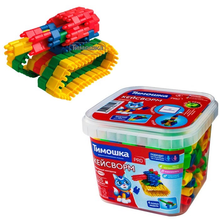 ТМ «ТИМОШКА» представляет необычный конструктор КЕЙСВОРМ. Детали конструктора можно соединять не только ровно друг на друга, но и под углом, что позволяет придумать большое количество вариантов сборки и создавать разные интересные фигуры.