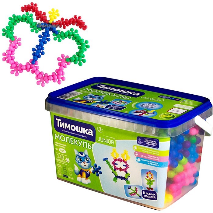 Конструктор "Молекулы" - простор для развития фантазии и воображения ребенка. Необычная форма деталей позволяет придумывать невероятные, фантастические конструкции в виде домов, животных и растений. Детали легко скрепляются и разъединяются друг с другом, делая процесс сборки простым и приятным для малыша. Играя, ребята смогут потренировать навыки мелкой моторики, логическое и пространственное мышление.