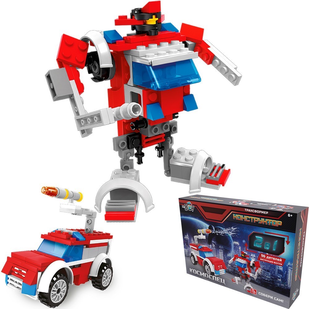 Детям предлагается собрать классного космического робота, который вовремя сражений может трансформироваться в мощный боевой автомобиль с ракетной установкой на крыше. Детали легко и плотно соединяются друг с другом (инструкция сборки в комплекте). Конструктор выполнен из качественного, безопасного- (без запаха) пластика.