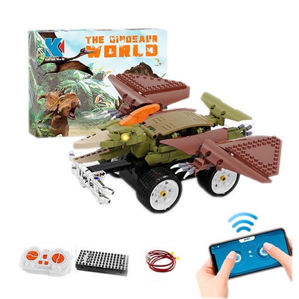 Яркий блочный 3D-конструктор на радиоуправлении позволяет собрать функционального динозавра.