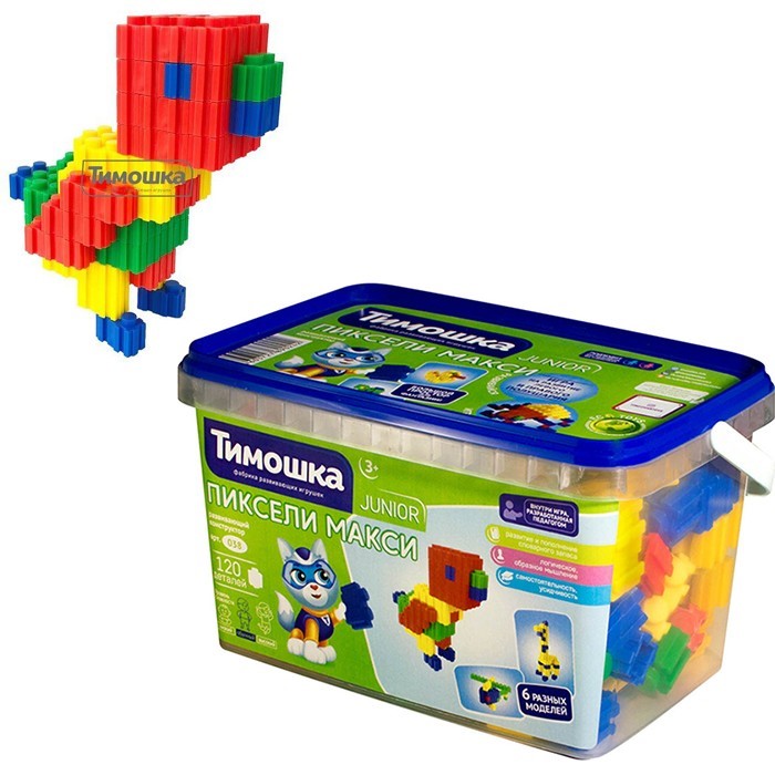 Конструктор "Пиксели maxi" - невероятный простор для детского творчества и фантазии. В комплект входит 120 разноцветных деталей, по форме напоминающих пиксели в изображении. Детали более крупные, чем в конструкторе "Пиксели mini", поэтому подойдут для ребят помладше. Из таких элементов можно создавать невероятно реалистичные объекты - животных, транспорт, дома и растения. Все элементы отлично держатся друг с другом, благодаря вертикальной сборке и фиксации по бокам другими деталями. Играя, дети смогут развить навыки мелкой моторики, пространственного воображения и фантазию.
