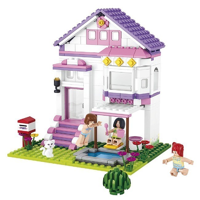 Конструктор для девочек 38-0532 из серии "Розовая мечта" от торговой марки "Sluban" - это для создания увлекательной сюжетно-ролевой игры и прекрасный подарок и возможность для ребенка весело и с пользой провести время. В процессе игры ребенок сможет создать яркий и необычный сказочный мир с принцессами и прекрасными принцами, дворцами и каретами, загородными домами и обставленными комнатами. Этот набор позволит сконструировать виллу с бассейном. В комплект входят подвижные фигурки человечков и аксессуары. Все наборы совместимы друг с другом и аналогичными наборами других производителей. Благодаря этому набору, ребенок сможет придумать множество сюжетно-ролевых игр. Конструирование развивает логическое и образное мышление, наблюдательность и самостоятельность, а также мотор