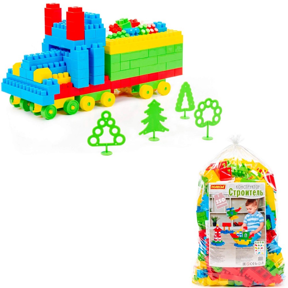 Конструктор "Строитель" Макси-плюс состоит из 350 элементов различных форм и цветов. В набор входят детали для создания паровозика, домов, замков, а также деревья, которые помогут придать завершенный вид сказочному городку. Все элементы плотно соединяются друг с другом, а также легко расцепляются, имеют гладкие поверхности без зазубрин, и изготовлены из качественных безопасных материалов. Игра с таким конструктором поможет ребенку в развитии мелкой моторики, пространственного мышления, воображения и цветового восприятия. Цвета представлены в ассортименте.