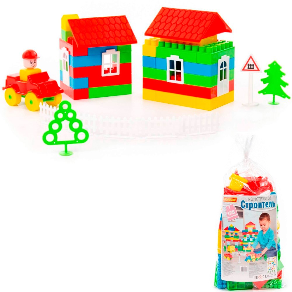 Конструктор "Строитель" 52544 П-Е от торговой марки "Полесье" - это функциональный набор из крупных деталей для создания увлекательной сюжетно-ролевой игры и прекрасный подарок и возможность для ребенка весело и с пользой провести время. В процессе игры ребенок сможет сконструировать вращающуюся площадку-карусель, а также множество вариаций построек. В комплект входят сборные фигурки человечков, детали для постройки техники и зданий, фигурки деревьев, блоки и аксессуары. Все наборы совместимы друг с другом и аналогичными наборами других производителей. Конструирование развивает логическое и образное мышление, наблюдательность и самостоятельность, а также моторику рук и ловкость пальцев. Игрушка красочно оформлена и изготовлена из качественного пластика с применением безопасных красителей. Занимаясь с конструктор