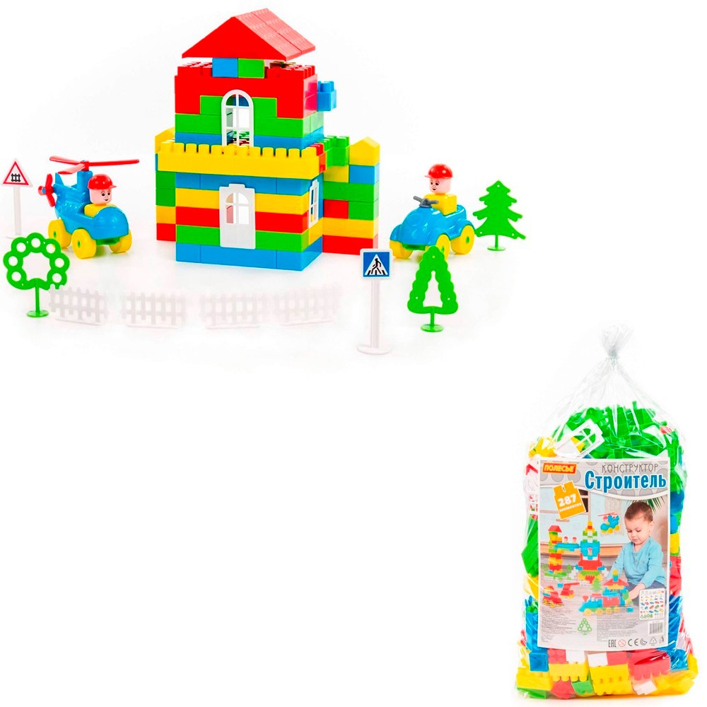 Конструктор "Строитель" 52551 П-Е от торговой марки "Полесье" - это функциональный набор из крупных деталей для создания увлекательной сюжетно-ролевой игры и прекрасный подарок и возможность для ребенка весело и с пользой провести время. В процессе игры ребенок сможет сконструировать вращающуюся площадку-карусель, а также множество вариаций построек. В комплект входят сборные фигурки человечков, детали для постройки техники и зданий, фигурки деревьев, блоки и аксессуары. Все наборы совместимы друг с другом и аналогичными наборами других производителей. Конструирование развивает логическое и образное мышление, наблюдательность и самостоятельность, а также моторику рук и ловкость пальцев. Игрушка красочно оформлена и изготовлена из качественного пластика с применением безопасных красителей. Занимаясь с конструктором
