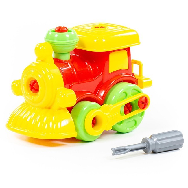 Конструктор представляет собой сборную модель паровозика. Ее необходимо собирать из деталей при помощи шурупов и гаек, а помогут в этом инструменты. В процессе этой увлекательной игры малыш научится отвинчивать и завинчивать гайки, будет тренировать внимание, мелкую моторику и мышление. Игрушка красочно оформлена и изготовлена из качественного пластика с применением безопасных красителей.