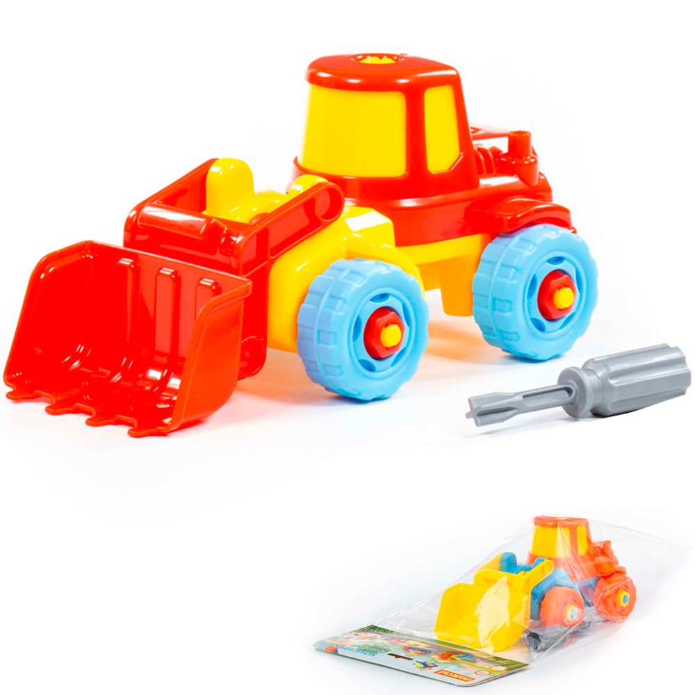 Конструктор представляет собой сборную модель погрузчика. Ее необходимо собирать из деталей при помощи шурупов и гаек, а помогут в этом инструменты. В процессе этой увлекательной игры малыш научится отвинчивать и завинчивать гайки, будет тренировать внимание, мелкую моторику и мышление. Игрушка красочно оформлена и изготовлена из качественного пластика с применением безопасных красителей.