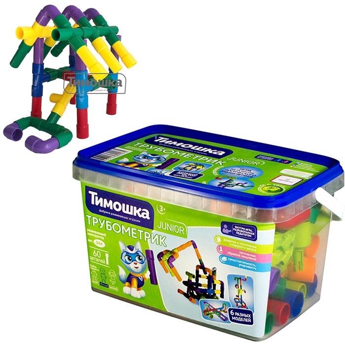 Конструктор "Трубометрик" - это простор для детского творчества и фантазии. В комплекте - 60 разноцветных деталей, выполненные в виде отрезков трубы, колесиков и соединительных элементов. Из таких элементов можно создавать как плоские, так и объемные фигуры, используя примеры из обучающей игры или придумывая собственные конструкции. Собирая детали "Трубометрика", дети смогут потренировать навыки мелкой моторики, пространственного и логического мышления, цветовое восприятие и фантазию.