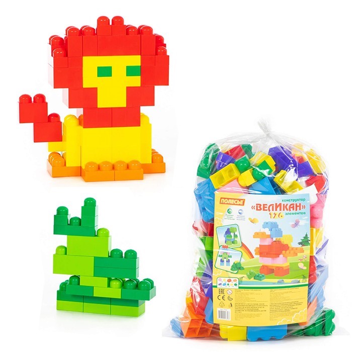 Конструктор "Великан" состоит из 126 деталей ярких расцветок. С его помощью малыш сможет создавать уникальные конструкции - домики, замки, стены и многие другие, какие только подскажет ему фантазия. Детали плотно соединяются друг с другом и хорошо держатся вместе, разбирать их так же легко. Все элементы гладкие на ощупь, без зазубрин и шероховатостей, изготовлены из качественного нетоксичного пластика. Игра с таким конструктором поможет ребенку в развитии мелкой моторики, пространственного мышления, воображения и цветового восприятия. Цвета представлены в ассортименте.