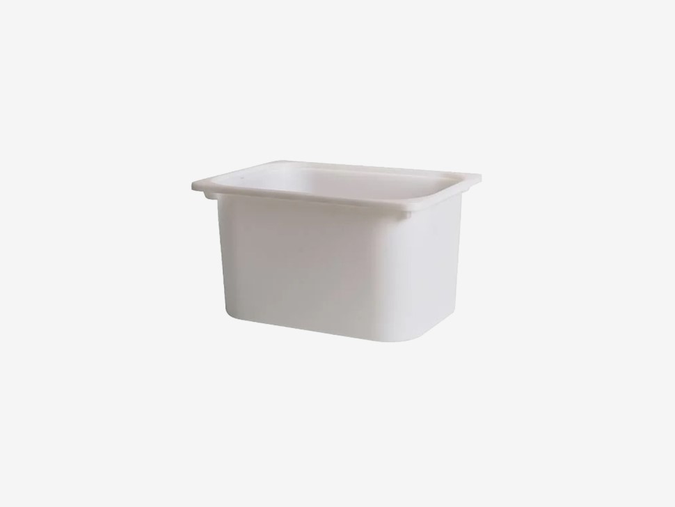 Описание и комплектация для прайсаГлубокий белый контейнер для хранения мелков, кубиков и пазлов. Изготовлен из прочного пластика.