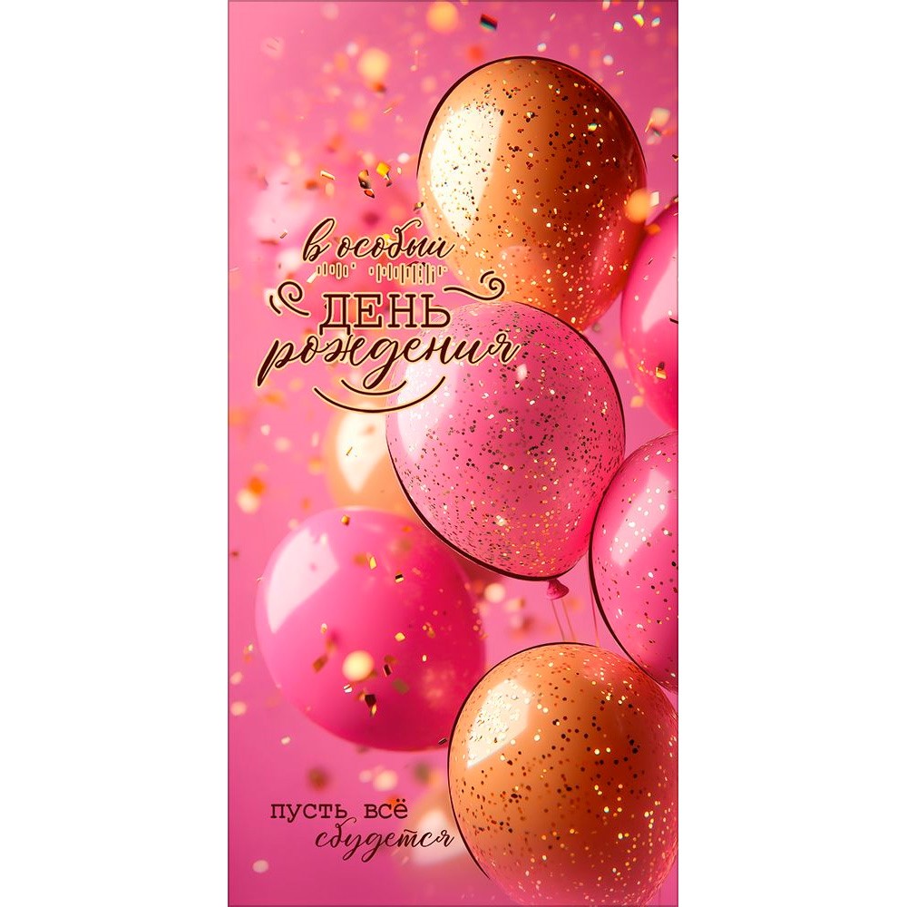 Конверт для денег В особый День рождения. Пусть всё сбудется (розовые и золотые шары)