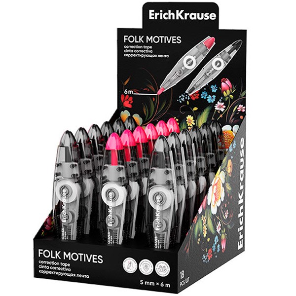 Корректирующая лента 5мм 6м Spin Light Folk Motives с автоматической фикса ассорти 65027 ErichKrause