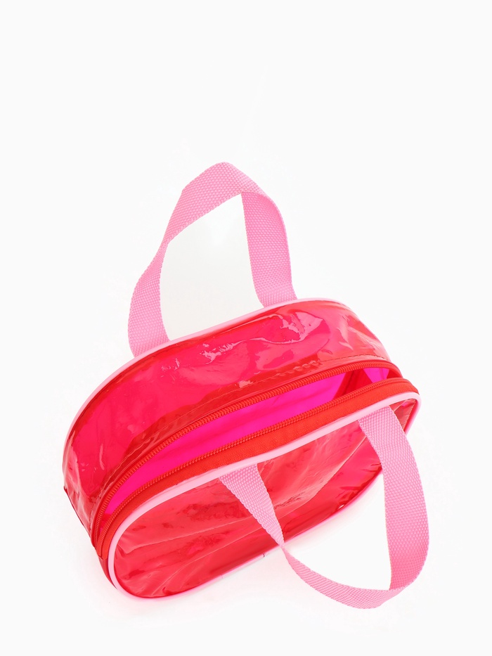Прозрачная розовая косметичка с молнией — стильный и практичный аксессуар для бассейна, спортзала или путешествий. Лёгкая сумка из прочного ПВХ сохранит вещи сухими, а прозрачные стенки помогут быстро найти нужное. Удобные ручки и надёжная застёжка делают её идеальным выбором для девушек и девочек.