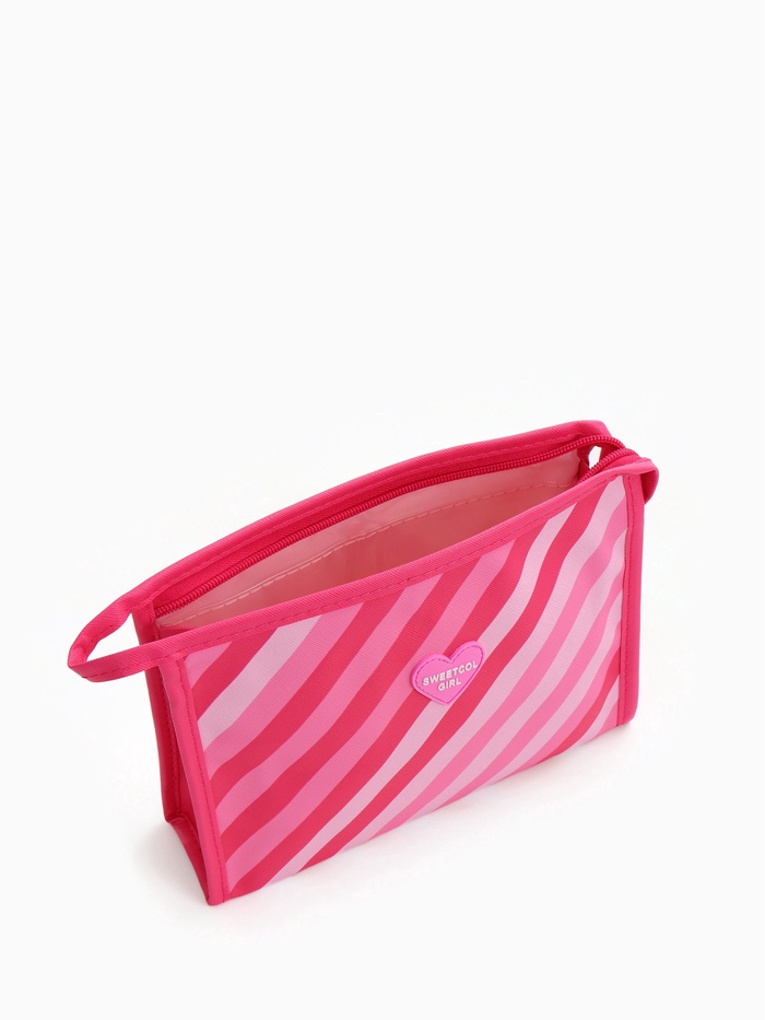 Косметичка треугольная на молнии, средний размер, в полоску, малиновая