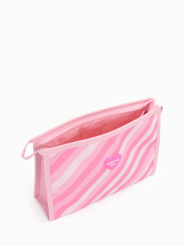 Косметичка треугольная на молнии, средний размер, в полоску, розовая