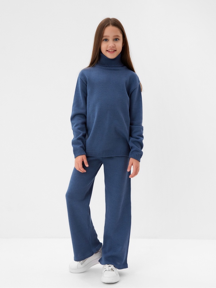Костюм вязаный детский (Свитер и брюки) MINAKU, цвет синий, рост 152 см