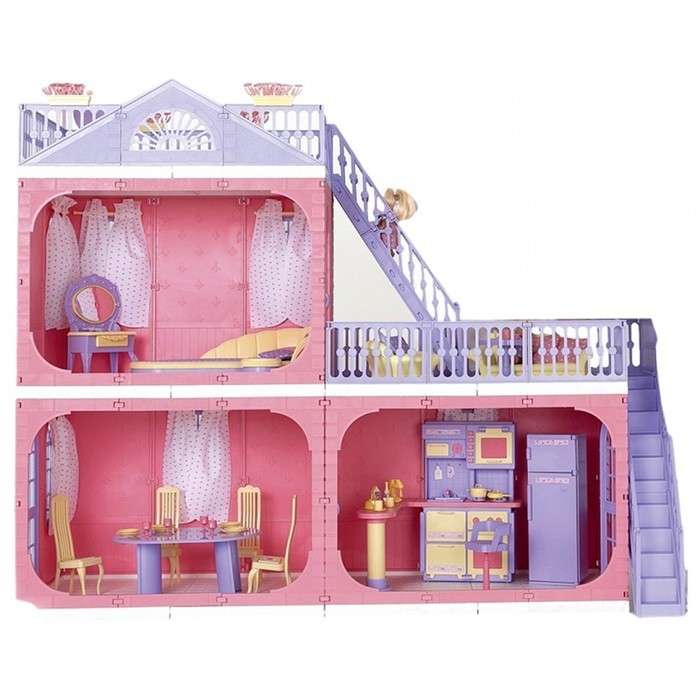Коттедж "Маленькая Принцесса" - это просторное двухэтажное жилище для кукол высотой до 35 см. На первом этаже расположено две комнаты, на втором - одна комната и лоджия, а над верхним этажом расположена крыша с перилами и цветочными горшками, на которой куклы могут отдыхать и проводить чаепития. Этажы соединяют лестницы, на окнах - легкие тканевые занавески, с одной стороны дом закрыт стенами и окнами, с другой - открыт для игры. Коттедж выполнен в нежных розовых и сиреневых тонах, что обязательно оценит маленькая принцесса. Игра с таким домиком поможет ребенку развить воображение, сюжетно-образное мышлени и мелкую моторику, а также отлично провести время. Цветы и занавески входят в комплект, мебель и кукла в набор не включены.