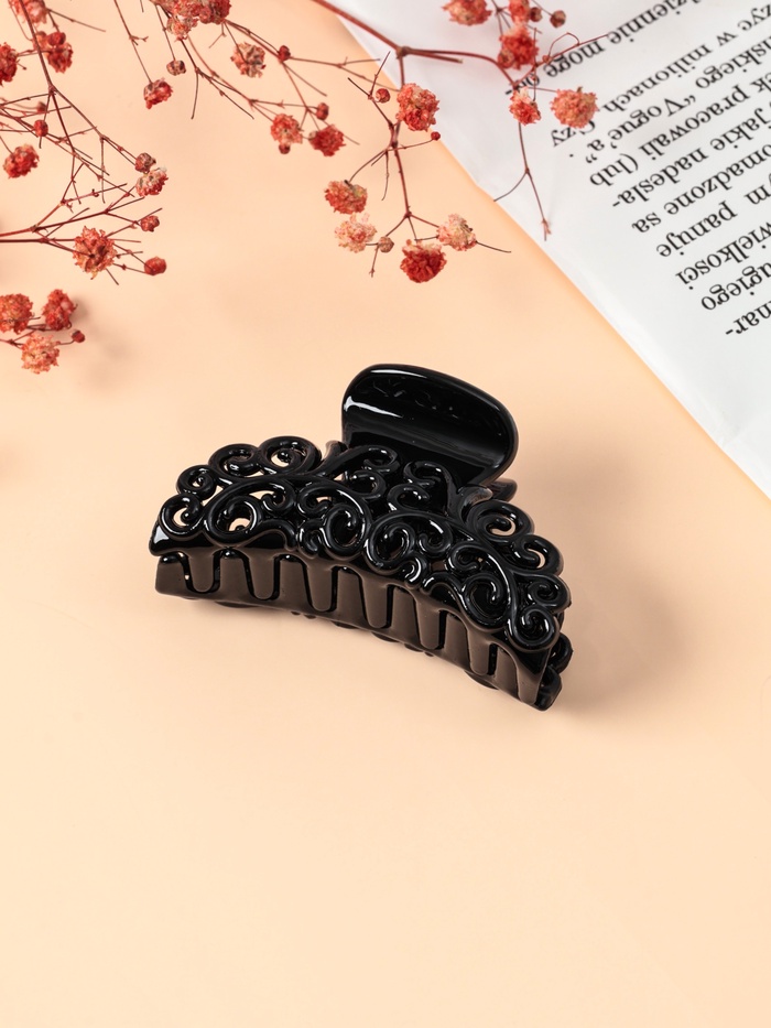 - Ажурный узор и глянцевое покрытие: Лёгкий ажур делает заколку изящной и невесомой на вид, а глянцевый блеск добавляет образу лоска. Чёрный цвет универсален и легко сочетается с любой палитрой одежды — от повседневного стиля до вечернего наряда.