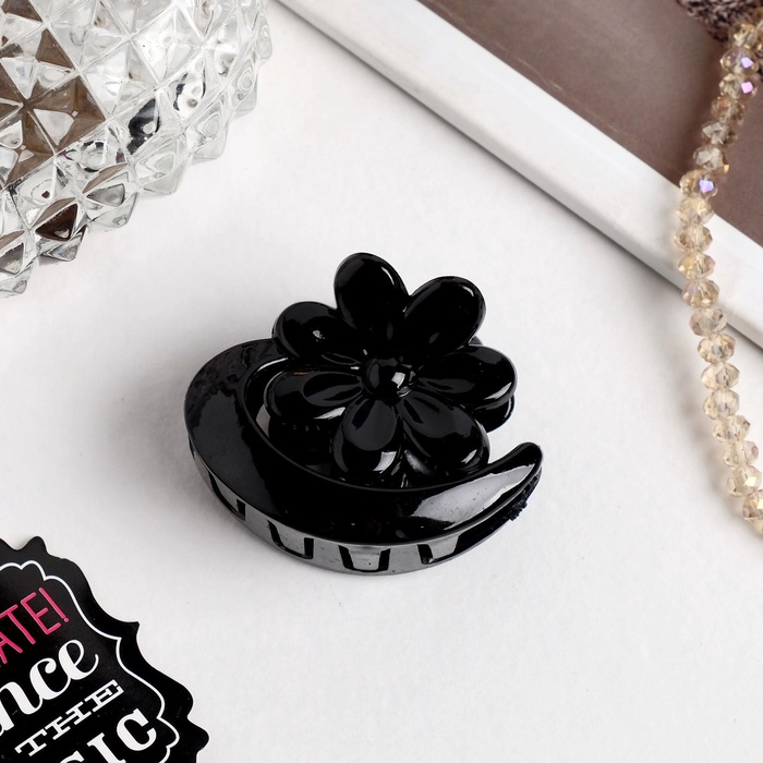 Аккуратный и стильный акцент для вашей причёски! Чёрный зажим-краб с цветком — это компактное и надёжное решение для создания элегантной укладки. Миниатюрный размер сочетает в себе лёгкость и мощную фиксацию, а глянцевая поверхность добавляет образу завершённости.