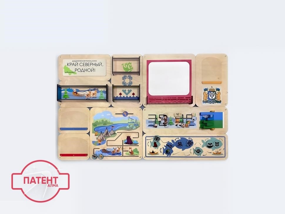 Занятия с панелью «Край северный, родной.ХМАО» нацелены познакомить детей с их малой родиной - Ханты–Мансийским автономным округом. Дети смогут в игровой форме познакомиться с культурой, традициями, обычаями, окружающим миром, символикой, коренным народом. Разработаны игры на мелкую моторику, логическое мышление и внимание.Панели креативно оформляют помещение и скрывают дефекты и неровности стен. Вы можете разместить их в группах, в межэтажном пространстве, в коридоре или зоне отдыха. Комбинируйте модули по своему желанию и размерам стен, а если осталось пустое место – закройте дополнительными декоративными блоками.