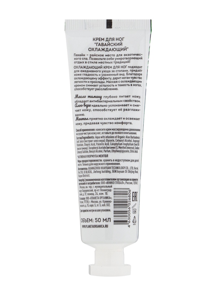 Крем для ног гавайский PLANETA ORGANICA охлаждающий, 50 мл