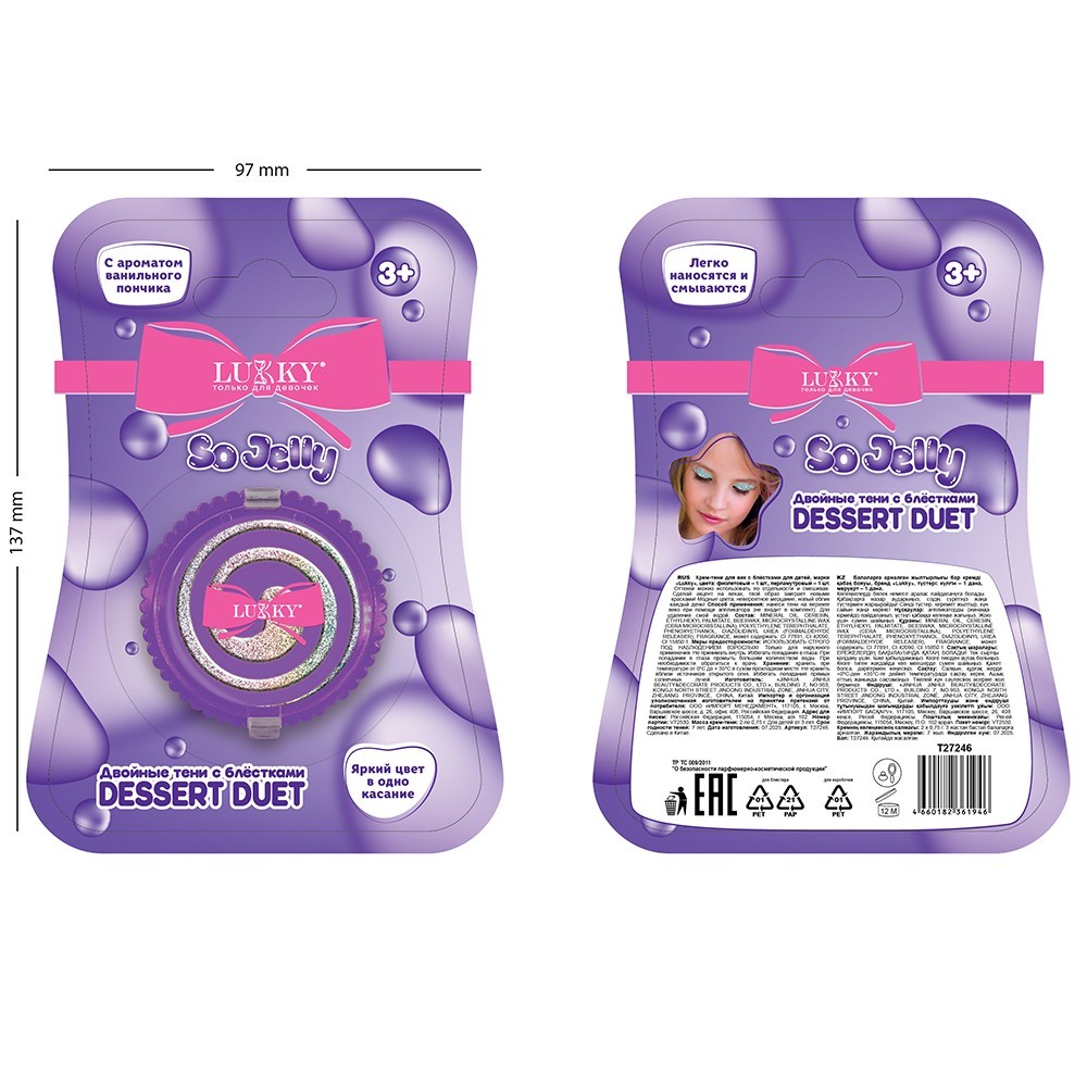 Крем-тени д.век двойные с блёстками,роз.и бирюз.,1,5 г.,аромат ванили Т27246