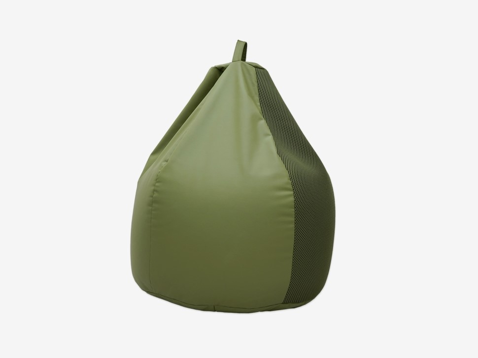 Бескаркасный кресло-мешок изготовлен из прочной и дышащей 3D-ткани и износостойкой экокожи.