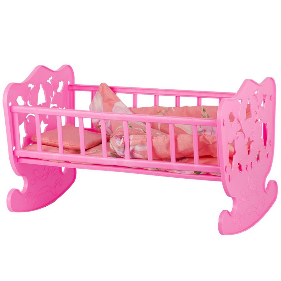 Маленьким любительницам ролевых игр понравится эта яркая кроватка с постельными принадлежностями. В ней уютно будет спать пупсик или кукла. Каркас прочный. Имеется бортик. Текстильные элементы легко стираются. Кроватка практичная, может использовать дома или в детских учреждениях.