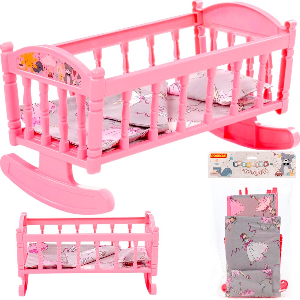 Кроватка-качалка сб. для кукол №4 розовая 24040