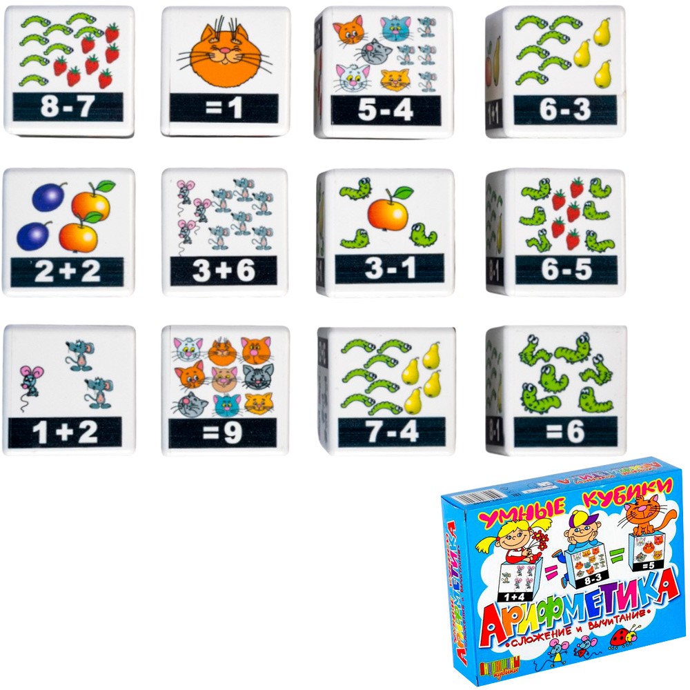Кубики Арифметика сложение и вычитание (12шт) 00649