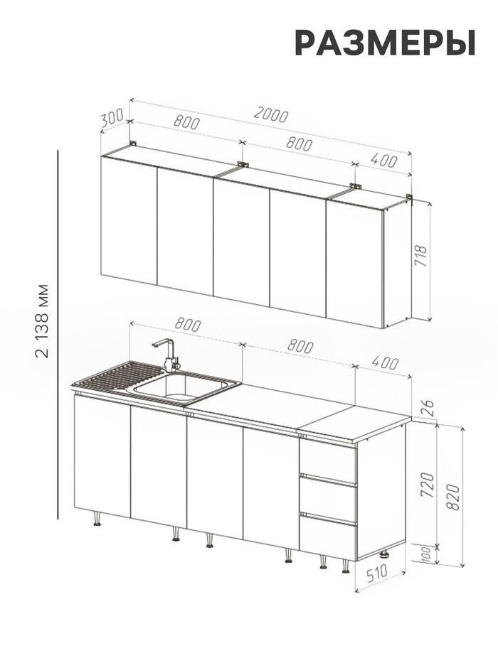 Высота кухни, мм2138