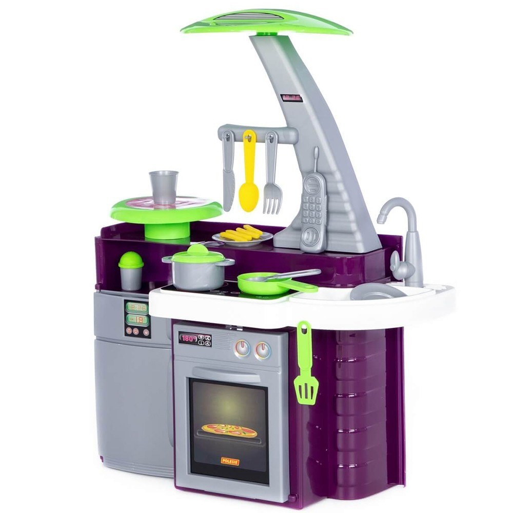 Для игр, имитирующих повседневные домашние дела, есть множество различных приборов и аксессуаров, которые позволят оборудовать игровой домик и организовать его пространство по образу и подобию взрослого. Такие игры приучают девочек к ведению домашнего хозяйства, готовят ко взрослой жизни. Набор посуды с плитой еды привлекает внимание не только своим ярким внешним видом, но и функциональностью. С ним малышка почувствует себя настоящей хозяйкой и сможет приготовить куклам угощение. Кухня отличается современным дизайном. Есть плита, мойка, вытяжка, духовка, холодильник и полочки для посуды.