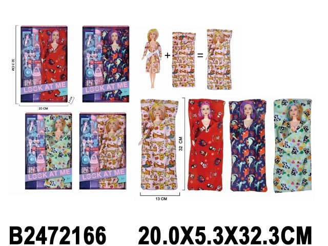 Комплектация: кукла - 1 шт., платье - 1 шт., конверт тканевый - 1 шт., аксессуары - в ассортименте