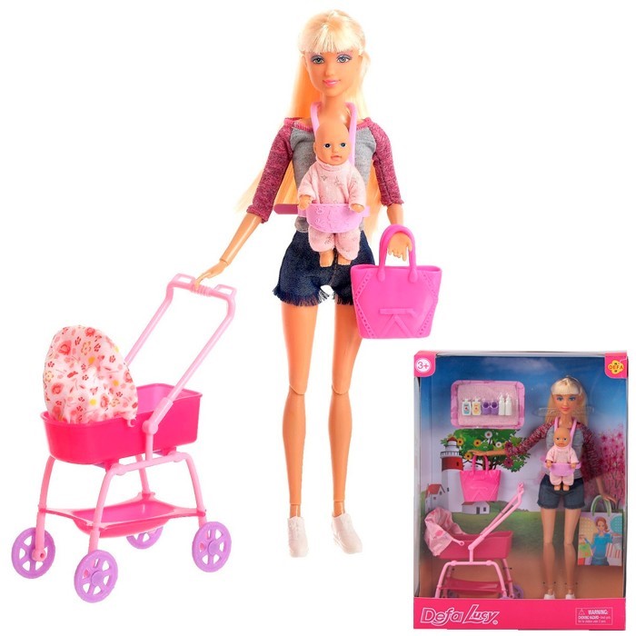 Кукла 8380 с ребенком и коляской, с аксесс. Defa Lucy