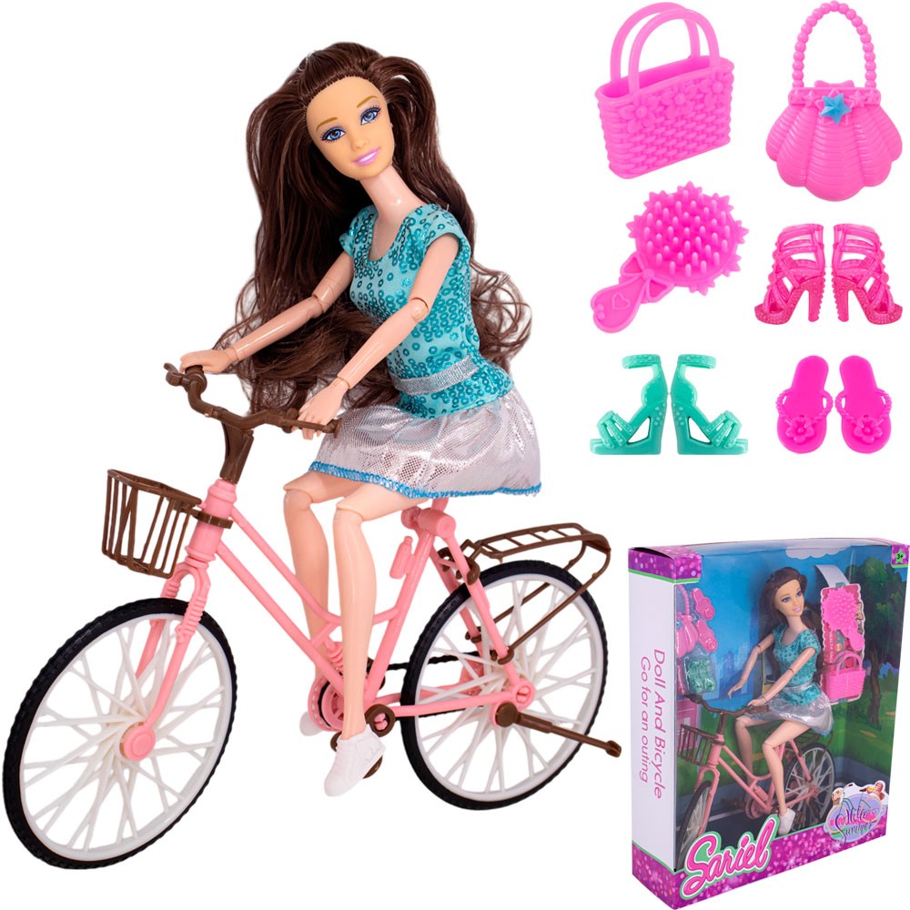 Кукла 91007-D на велосипеде аксессуарами в коробке