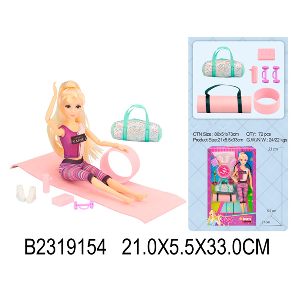 Набор состоит из фитнес-куклы и комплекта спортивных аксессуаров.