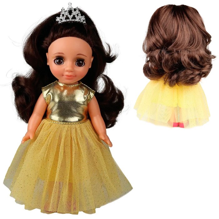 Ее современный образ принцессы с длинными, волнистыми волосами и воздушном платье придется по душе вашим детям.