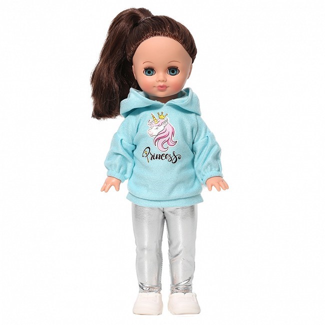 Герда модница 1 непременно понравится девочке, ведь она такая стильная! Кукла одета в толстовку с длинным рукавом и капюшоном, лосины из серебристого парчового трикотажа, а также туфли-кроссовки. У Герды длинные волосы из качественного прошитого нейлона, очень похожие на настоящие, их можно причесывать, завивать и укладывать, меняя образ красавицы. Ручки и голова игрушки выполнены из качественного винила, тело и ножки - пластиковые, глаза - вставные закрывающиеся. Благодаря тому, что руки и ноги куклы подвижны, ее можно садить, ставить и укладывать спать, что разнообразит игровые сюжеты. Герда модница 1 озвучена, при нажатии на звуковое устройство произносит следующие фразы: