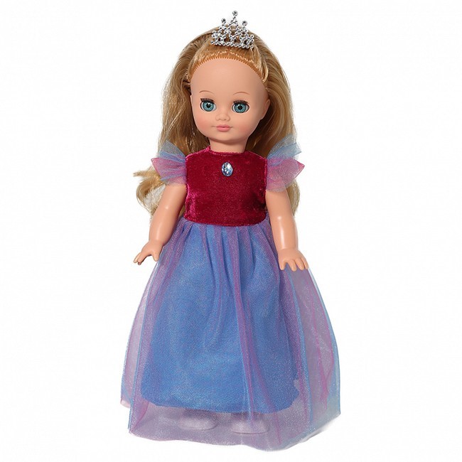 Герда праздничная - это настоящая принцесса! С такой куклой девочка сможет придумывать великое множество игр, развивающих фантазию и сюжетно-образное мышление. Герда одета в нарядное платье из бархата, креп-сатина и органзы, на голове у нее красуется сверкающая диадема. У куклы длинные прошитые волосы из качественного нейлона, очень похожие на настоящие, вставные закрывающиеся глаза, подвижные руки и ноги. Тело игрушки полностью выполнено их современного материала - винила, качественного и приятного на ощупь. При нажатии на звуковое устройство кукла произносит следующие фразы: