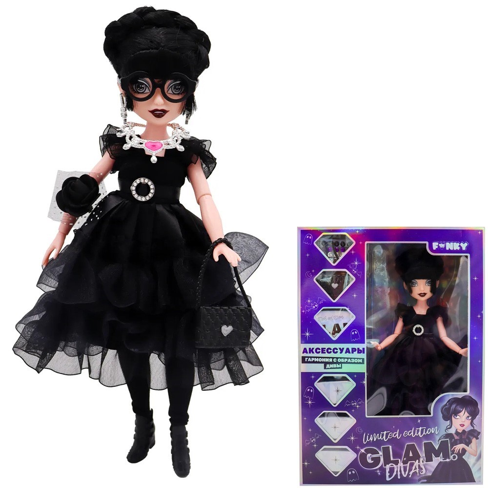 Кукла Glam Divas Вэнди с аксессуарами, черное платье 25 см Funky Toys FT00008