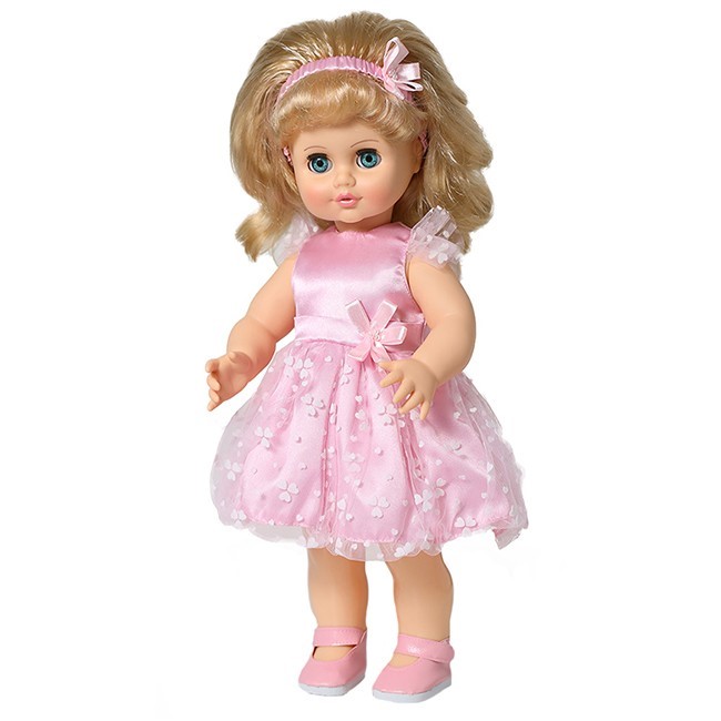 Кукла Инна Весна 6 озвучена, имеет вставные закрывающиеся глаза и пропорциональное тело. Ручки и голова выполнены из эластичного, приятного на ощупь винила, а туловище и ноги из пластмассы.