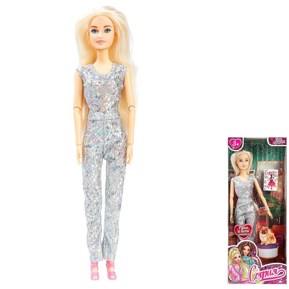 Комплектация: кукла - 1 шт., бижутерия, костюм - 1 шт., туфли - 1 пара, питомец - 1 шт.
