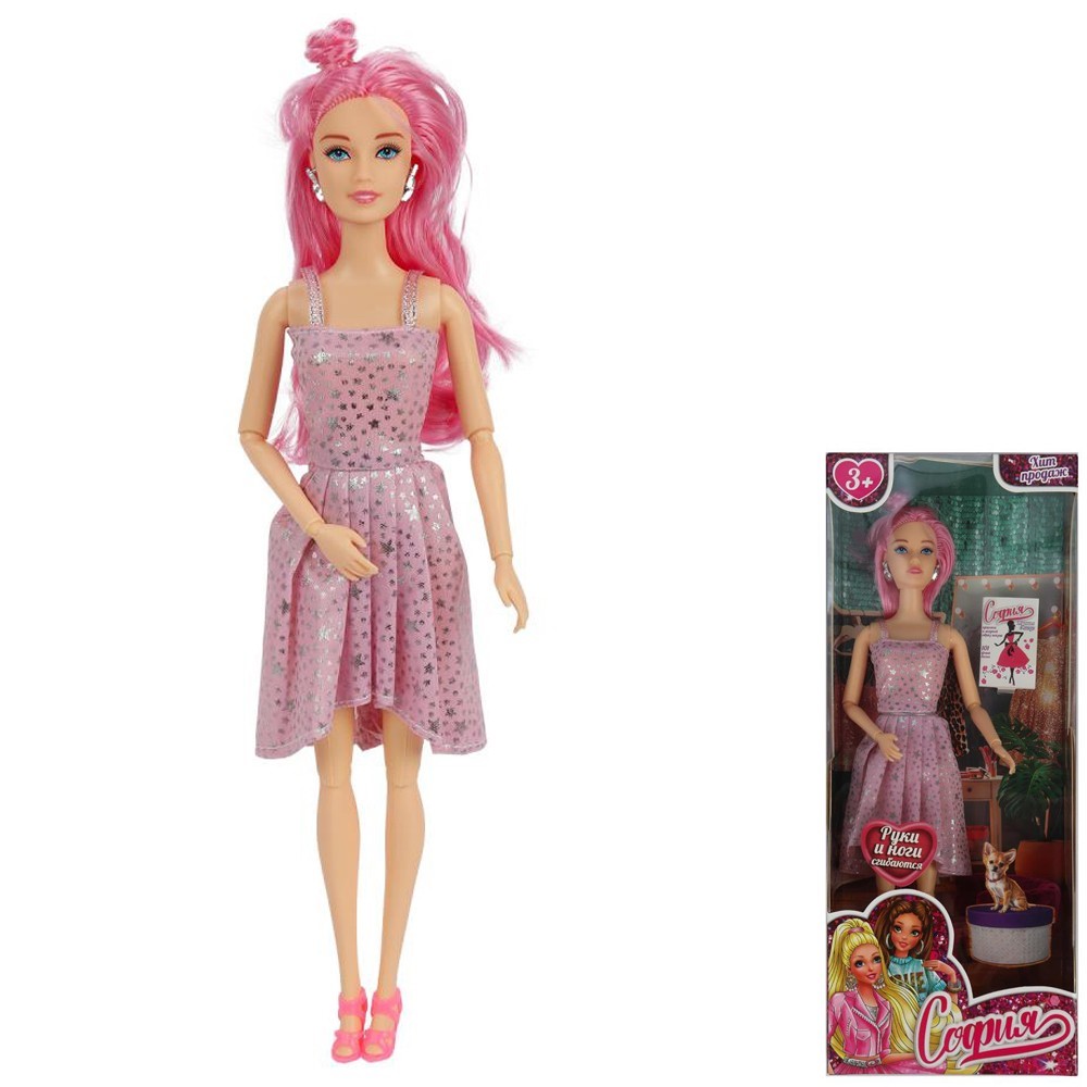 Комплектация: кукла - 1 шт., бижутерия, платье - 1 шт., туфли - 1 пара, питомец - 1 шт.