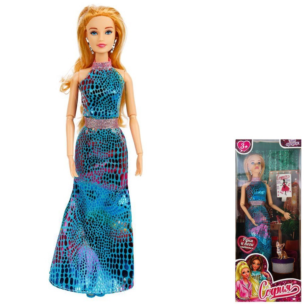 Комплектация: кукла - 1 шт., бижутерия, платье - 1 шт., туфли - 1 пара, питомец - 1 шт., аксессуар - 2 шт.