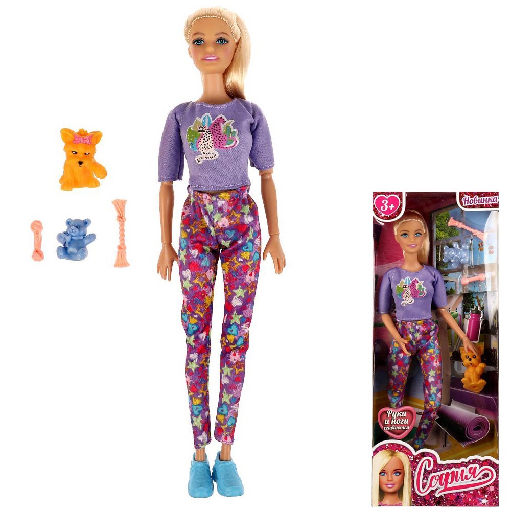 Кукла Карапуз 66001PET-S2-S-BB София 29 см руки и ноги сгиб, собака, акс